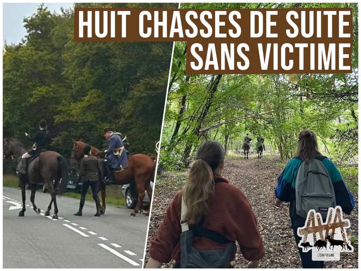 Dans les villages de la France périphérique où des invasions et des agressions se produisent, comme dans les bois où des animaux sont lâchement torturés et tués, notre organisation dévoile et fait reculer cette barbarie qu’est la chasse à courre. Les valeurs de leur monde ont été une nouvelle fois exposées au grand jour à Laon.